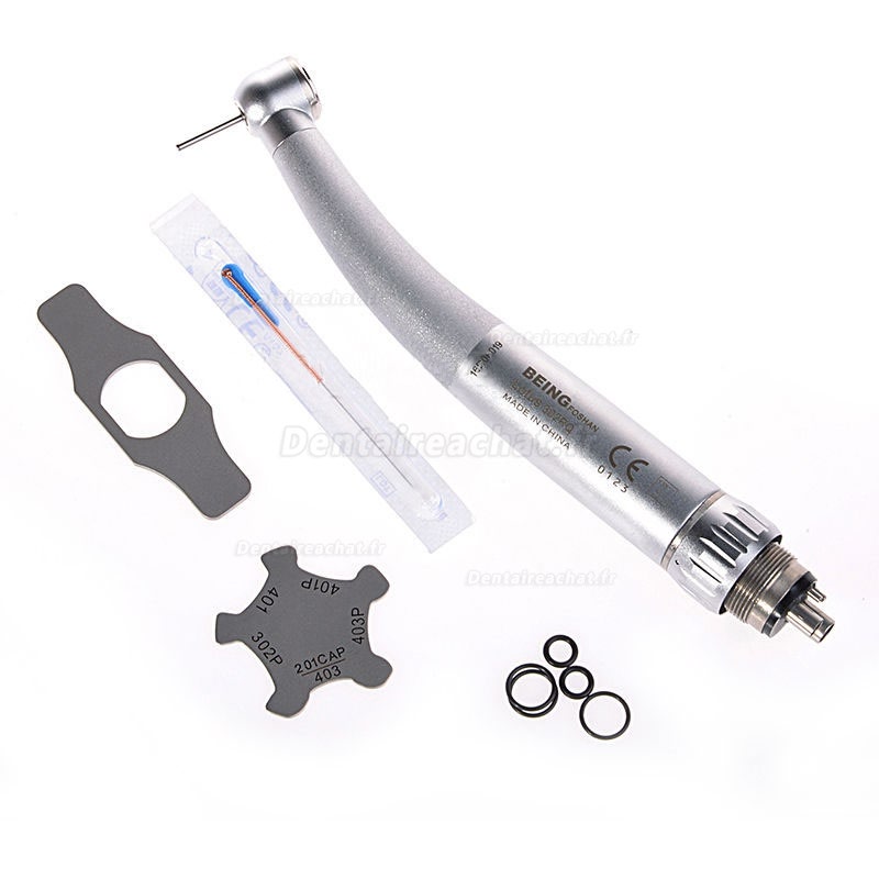 Description: Being Lotus 302PQ Turbine Bouton Poussoir à haute vitesse avec raccord rapide Kavo compatible ,type bouton poussoir pièce à main de haute vitesse, de l'eau pulvérisée triple, système anti-retrait,avec raccord rapide.