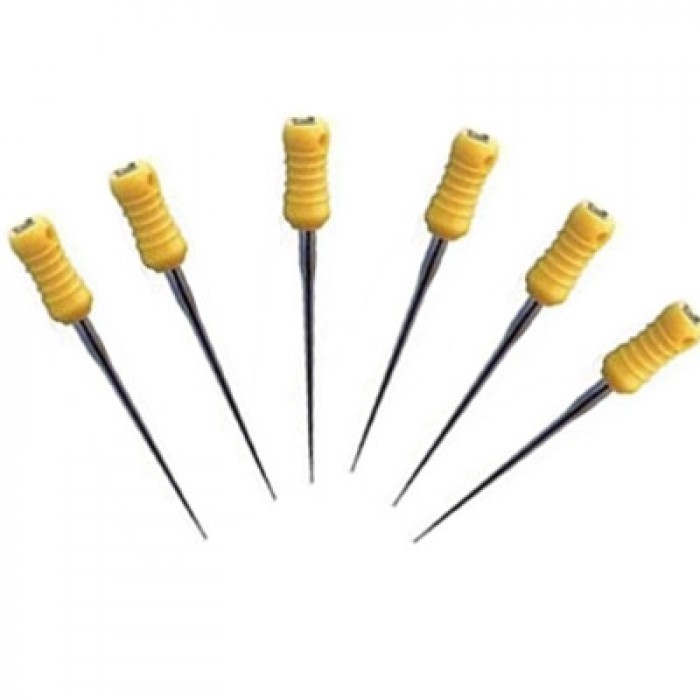 6PCS 21mm 20# MANI Fouloirs Latéraux, Un fouloir latéral a une pointe conique et est conçu pour la condensation latérale de pointes de gutta-percha.Dimensions / ISO : 20.Longueur : 21 mm. Détails du produit>>