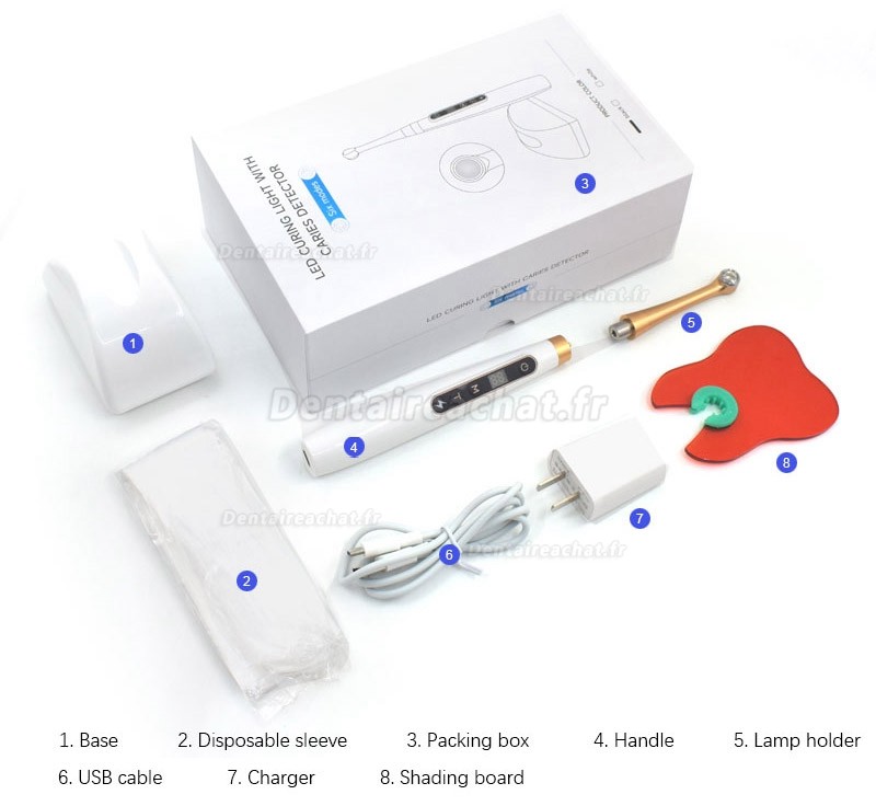 Lampe à polymériser LED dentaire 6 modes 1800 MW/CM2 avec détecteur de caries Détails du produit>>
